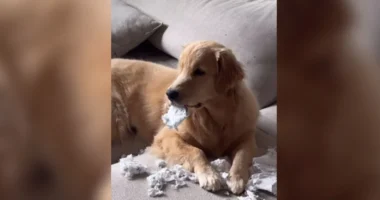 Golden invade sala e transforma rolo de papel higiênico em caos hilário: veja o vídeo!